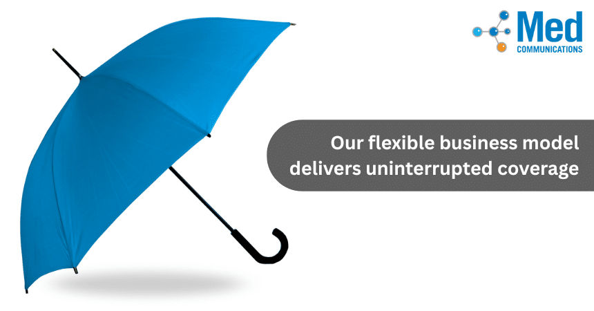 At Med Communications, we recognize that dependable vendor support is essential for our clients. Our remote-first, adaptable business model ensures continuity even in the face of unexpected challenges, including severe weather and natural disasters. Whatever tomorrow brings, we’re ready to maintain business as usual.
